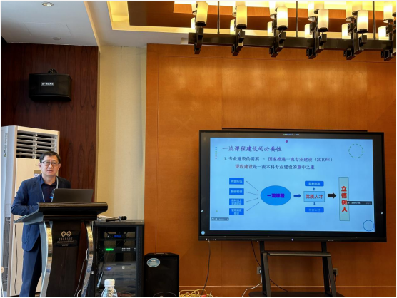 在发言中,全永根特别基于教育部的政策和要求,讲解了在“线上线下混合式一流课程”建设中对于改革创新的要求、“两性一度”的实现方法,并以《韩国语阅读(1,2)》及课程依托的“名师云课荟萃”平台为例,说明了建立线上线下混合式教学模式的过程和路径。最后呼吁韩语(朝鲜语)系教师要增强课程建设意识,勇于探索,积极行动。