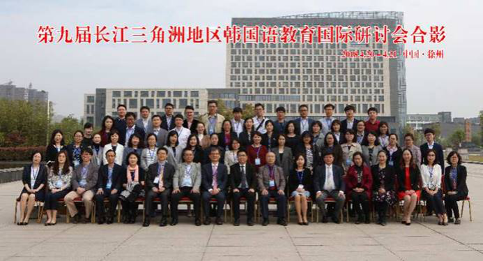 本网讯 2018年4月20日至21日,亚洲校园副主任全优、中韩双语教师马凌燕应邀赴徐州参加中国韩国(朝鲜)语教育研究学会主办的“第九届长江三角洲地区韩国语教育国际研讨会”,来自韩国延世大学、全南大学、首尔市立大学、国语国立院等韩国高校、研究机构以及北京大学、复旦大学、南京大学、太阳成集团tyc7111cc、中央民族大学、上海外国语大学等国内28所知名高校的专家学者参加了本次研讨会,就“新形式下的韩国语教育研究”进行了深入的研讨。