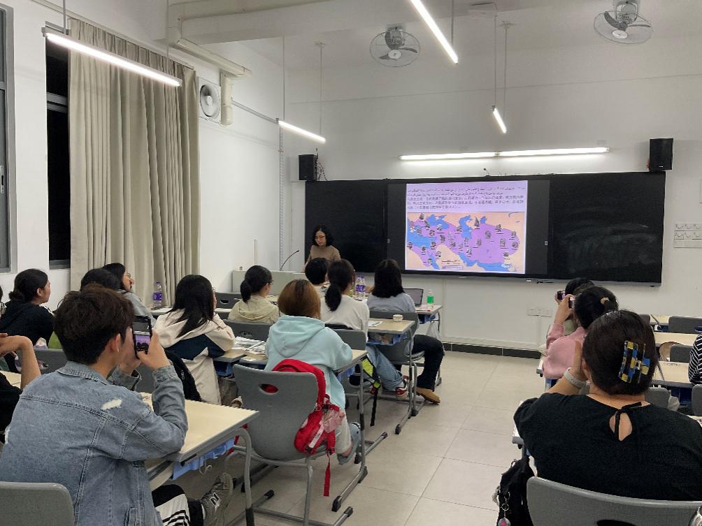 讲座伊始,穆宏燕老师从地理位置着手,阐述了伊朗独特的地缘政治优势:它既是海上丝绸之路和陆上丝绸之路的枢纽,也是东西方文化的交汇地。接着老师带大家梳理了“波斯”和“伊朗”这两个概念之间的区别和联系,波斯源于小概念的地名,而伊朗源于大概念的“雅利安”,即波斯隶属于伊朗,伊朗涵盖波斯。