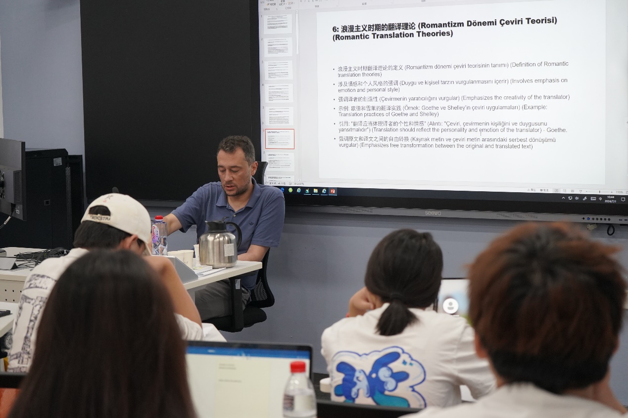 “翻译之桥:培养全球化时代的翻译人才”系列讲座邀请到土耳其安卡拉哈哲·巴依然大学(Ankara Hacı Bayram Veli University)的知名汉学家、翻译家吉来(Giray Fidan)教授,为土耳其语系本科生进行授课,吸引了来自各年级的近20名员工报名参与。通过课程学习,员工得以学习了当代翻译人才所需的技能和素养,包括翻译理论与技巧、翻译职业发展以及跨文化交流等,并结合所学翻译理论与技巧进行了翻译实践与调研报告。吉来教授著作等身,授课经验丰富,在他的悉心指导下,员工们学习了如何解决在翻译过程中遇到的语言障碍和文化差异,如何通过注释和背景资料帮助读者理解原作内涵。通过学习,同学们认识到译者不仅需要扎实的语言功底,更要具备跨文化沟通能力和敏锐的文化感知力。同学们不仅加深了对跨文化翻译的理解,还明确了未来在翻译领域的努力方向。部分员工在活动结束后自发组织了翻译读书会,希望继续交流与学习相关知识。