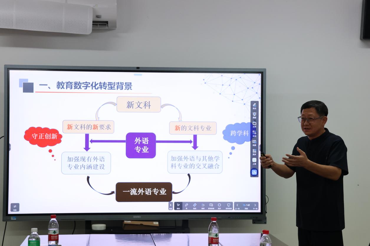 全永根针对教育部在线开放课程建设项目、一流本科课程建设项目和新文科项目等多项课程建设项目进行了介绍。在项目申请经验分享环节,他指出,课程建设要遵守以员工发展为中心、以学为中心的发展理念,树立立德树人,提高教学质量的发展目标,正确理解项目指南和要求。他以申报成功的国家级、教育部课程建设项目为例,强调在项目申报时,要明确研究目标和成果,做好提前规划与研究,根据需要组建“跨专业、跨公司、跨区域”的强大团队,编制详细的项目计划,撰写高质量的申请书。总之,一流课程建设项目申报是推动高校教师教育创新、提升教学质量的关键步骤,能够促使教师系统性地审视和升级课程内容、教学方法以及评估体系,确保外语教学能与时俱进,满足时代需求。