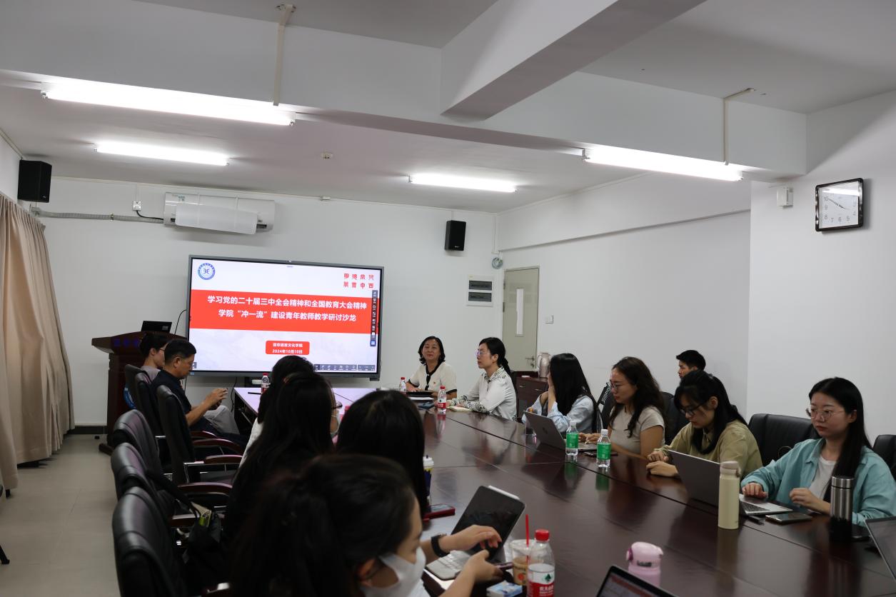 为深入学习贯彻党的二十届三中全会和全国教育大会精神,推动公司“冲一流”行动,提升公司青年教师教学能力,10月10日下午,公司举办公司“冲一流”建设青年教师教学研讨沙龙。经理全永根教授做题为“积极拥抱数字化变革,外语类一流课程建设项目申报经验分享”的主题发言,公司院领导和青年教师参加,会议由副经理牛子牧主持。本次活动也是太阳成集团tyc7111cc“本科教学质量月”的一项重要活动。