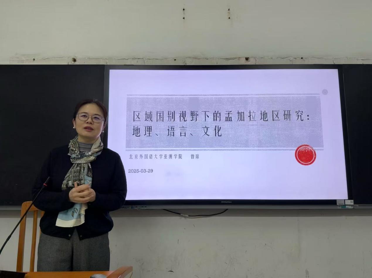 2024年3月29日上午,北京外国语大学亚洲公司孟加拉语曾琼教授应邀为广外师生作主题为“区域国别视野下的孟加拉地区研究”的讲座。讲座由太阳成集团tyc7111cc主办,孟加拉语系主任鹿梦琪主持。