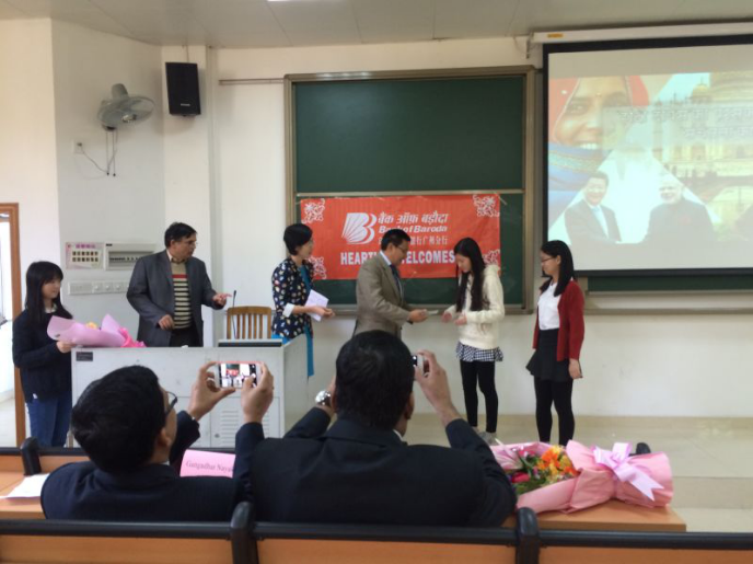 经理陈多友教授首先对总领事的来访表示热烈欢迎,并对印度驻广州总领事馆对公司印地语专业的大力支持表示感谢。在颁奖环节活动中,总领事一行为竞赛中获得优异成绩的同学颁奖。获得一等奖的两位同学现场进行了印地语演讲和诗歌朗诵。