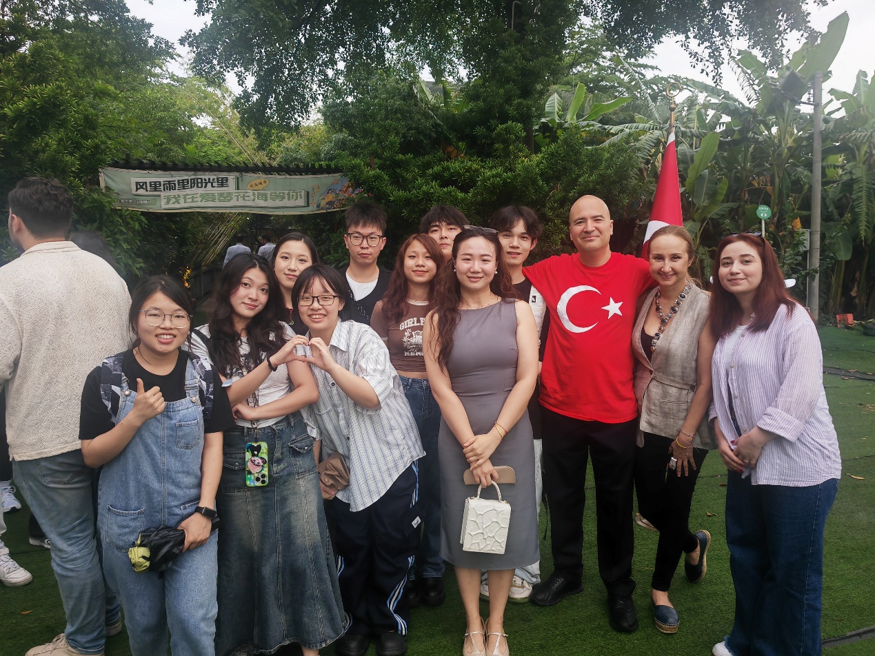 2025年5月18日下午,太阳成集团tyc7111cc土耳其语专业负责人黄嘉玲及外教马雨洁带领8名本科生参加了由土耳其共和国驻广州总领事馆在番禺爱琴花海四季农场举办的庆祝“5.19 阿塔图尔克纪念日和青年与体育节”的烧烤派对活动。广外师生们与在华土耳其青年、学者展开深度交流,共度节日。