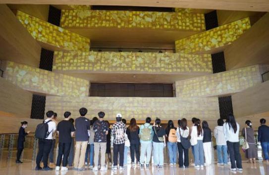 随后,在主楼文沁阁大厅,公司师生欣赏了投影在幕墙上流光溢彩的灯光秀,科技赋能,让历史在我们眼前展开画卷。之后,跟随讲解员依次参观了“千秋写印 华夏有章——中华版本概览”,“红色印记 映照初心——红色广东专题版本展”,“眼见——大美广东影像版本专题展”等主题展览。