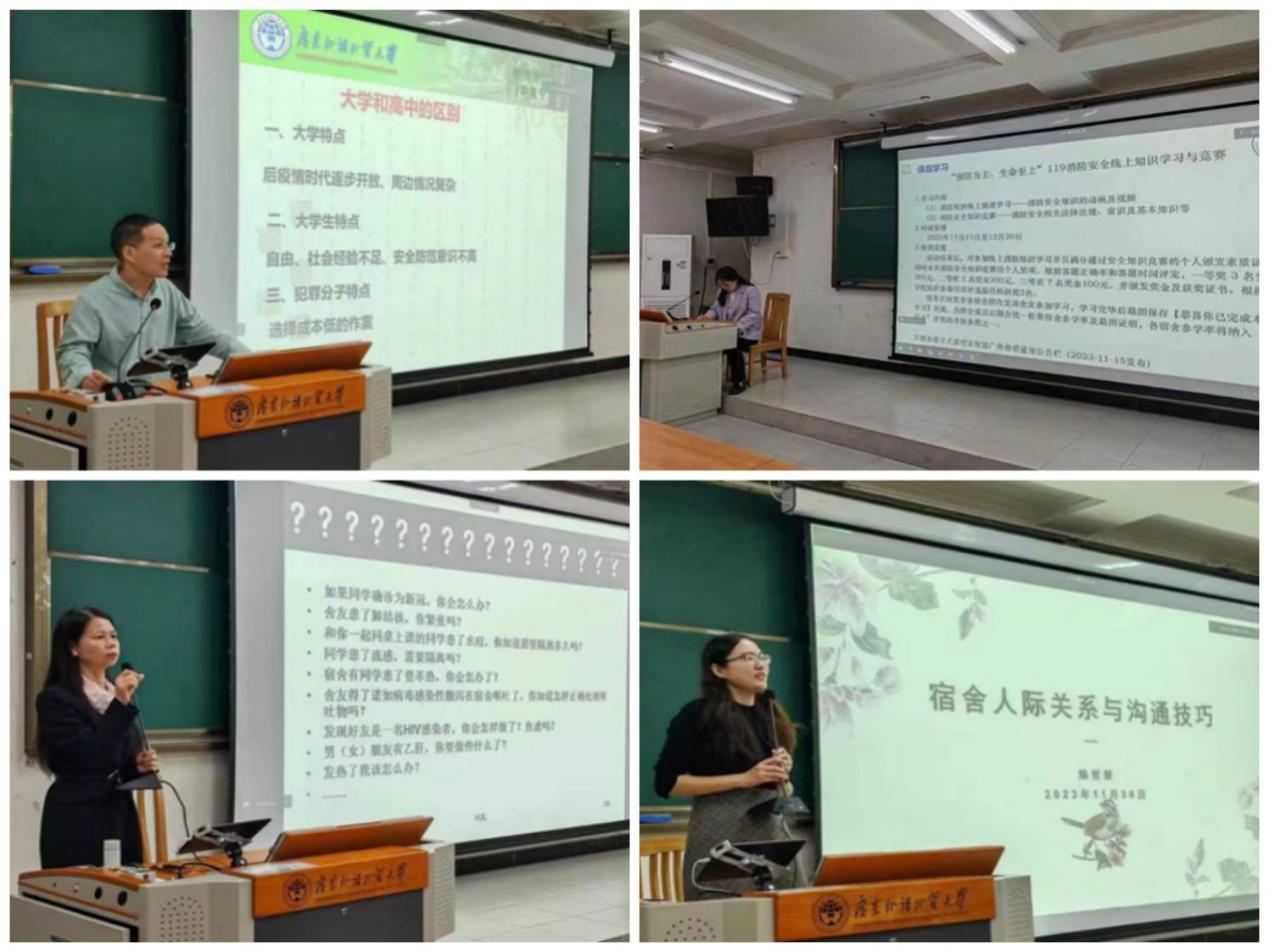 随后,校医院洪锦兰医生及保卫部郑安振老师分别对宿舍长们做公共卫生及急救知识培训和防诈骗及宿舍消防的安全培训,为宿舍安全筑牢保障。