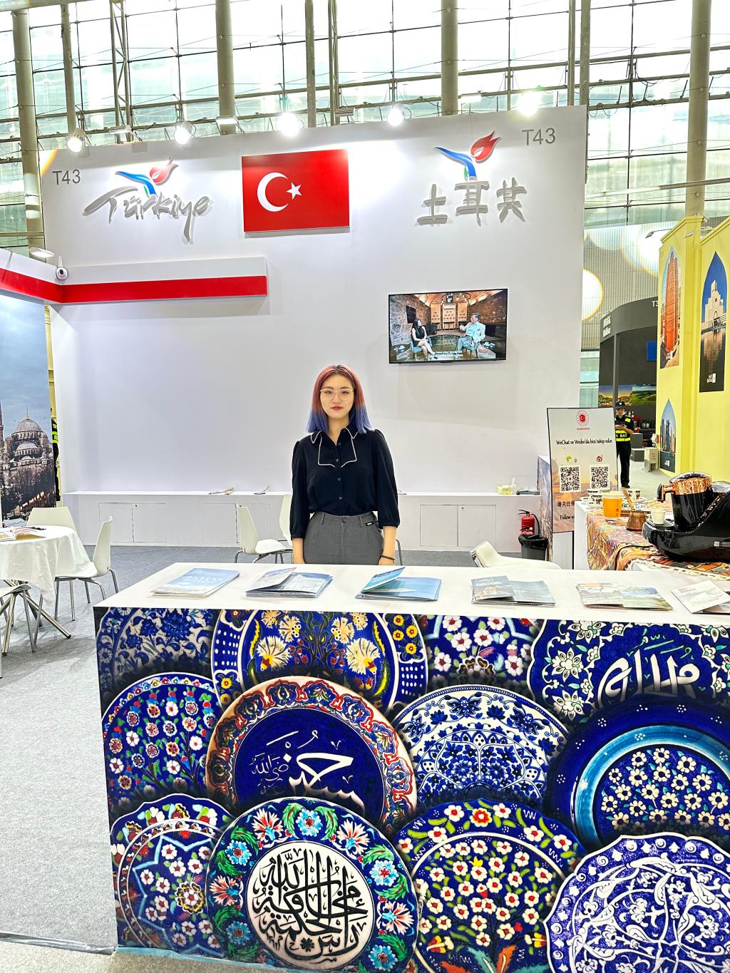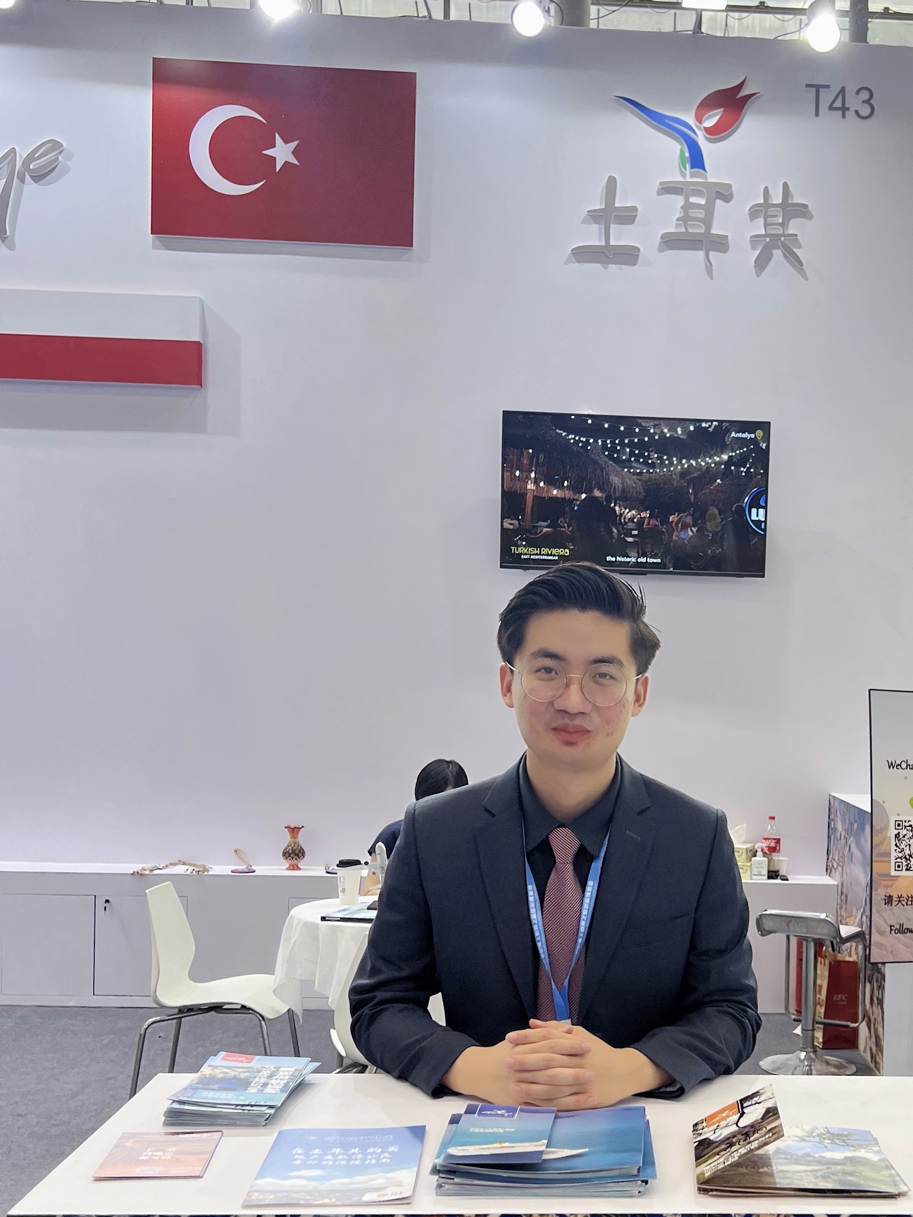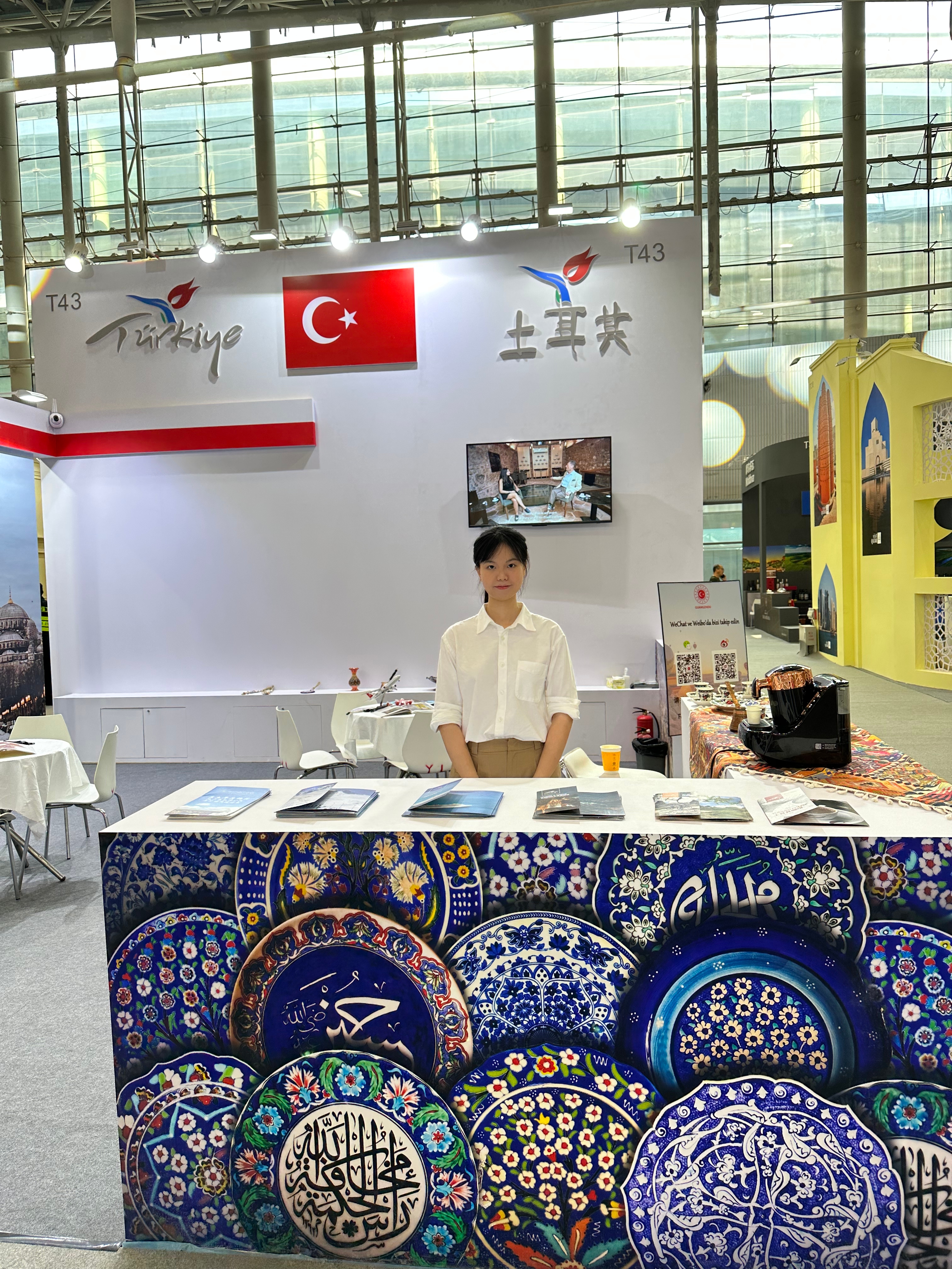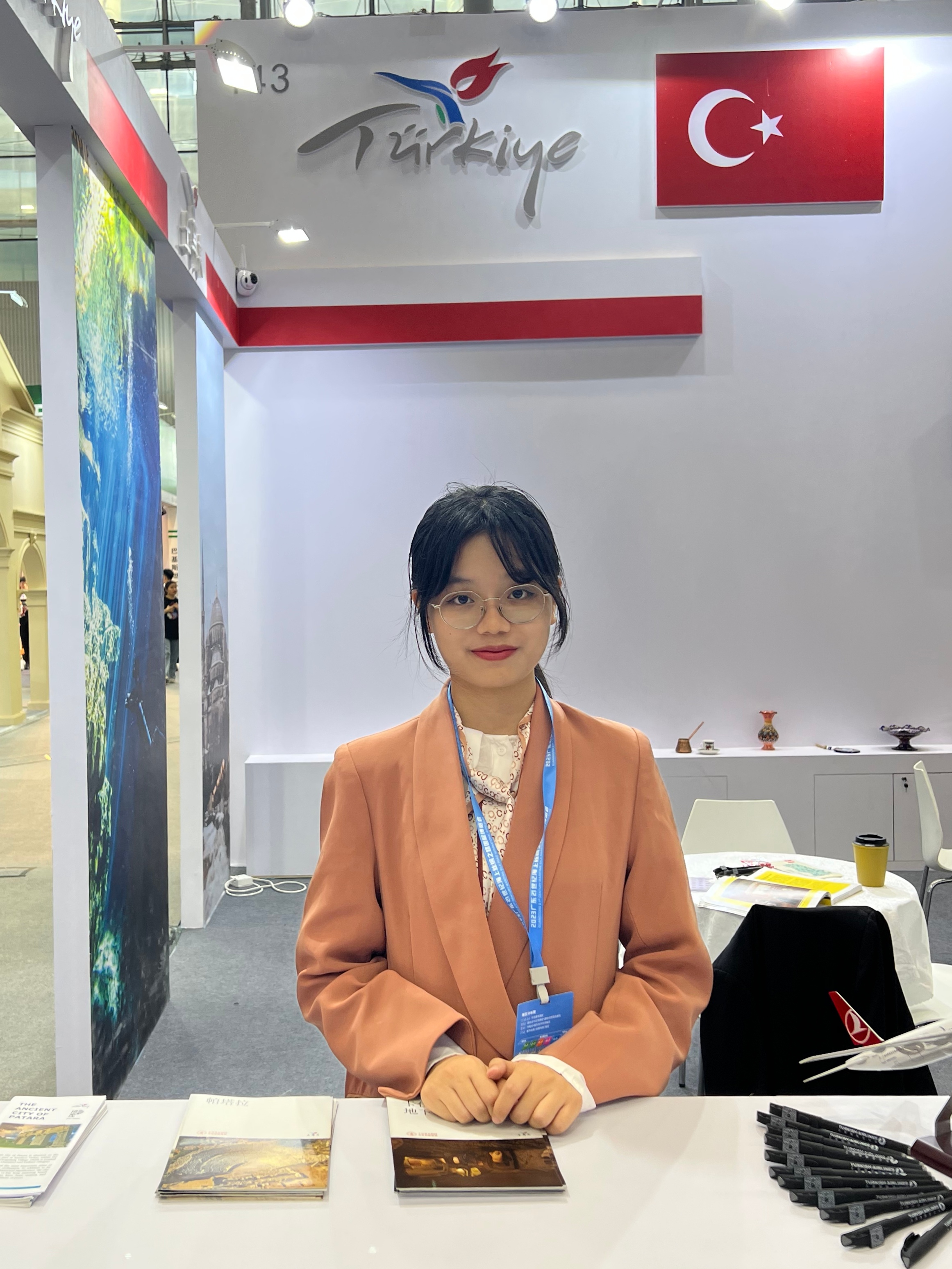 王紫熙:在工作期间,我印象最深刻的就是为参展者制作土耳其咖啡,并介绍制作方法,为大家答疑解惑,这种忙碌充实感让我享受其中。大家对“蓝眼睛”也很感兴趣,好几个人说去土耳其旅游的时候会买几个当作手信,展区氛围其乐融融,此次博览会是个开放的舞台,是让大家邂逅土耳其独特魅力的机会,对我来说也是很愉快的一次体验。
