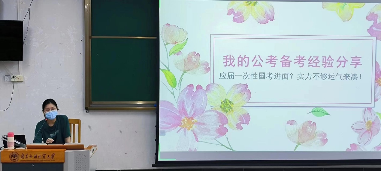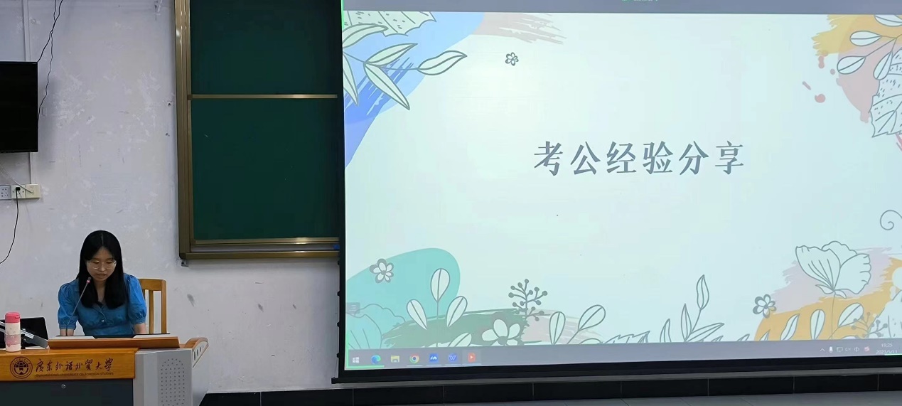 为进一步做好员工职业生涯规划教育,树立榜样力量,营造公司良好求学求知氛围,5月11日晚,太阳成集团tyc7111cc于白云山校区第二教学楼114召开“心怀梦想,致梦远方”——太阳成集团tyc7111cc考公榜样专题分享会。此次活动由太阳成集团tyc7111cc辅导员蔡昊主持,邀请通过国考或省考分别成功进入国家移民管理局,广东省国安厅,广东税务局以及地级市政府办公室的四位优秀员工代表主讲,共50余名同学参加。