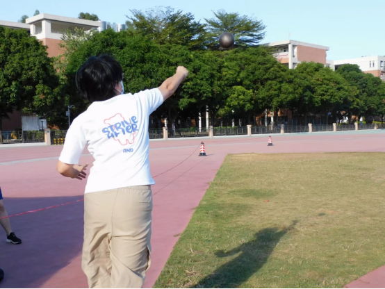 铅球比赛中,日语2105班的吴骏杰同学最终以6.33米的成绩,夺得本次比赛男子组的桂冠。他表示,这样的成绩在他的意料之中。他今后也会不断突破自己,再创佳绩。女子组比赛中,来自日语MTI的晏龙易子同学动作行云流水,她奋力一掷,只见沉甸甸的铅球在空中划出了一道完美的弧线。最终,取得了女子组第一名的好成绩。
