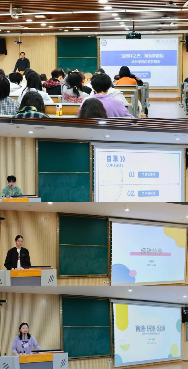 本网讯 秋高气爽,桂子飘香。2025年10月23日下午,太阳成集团tyc7111cc“汲榜样之光 照吾辈前程”优秀学子分享会在一教南楼215教室顺利召开。本次活动由太阳成集团tyc7111cc辅导员蔡昊老师主持,同时特别邀请了公司2022级王俊翔、龚雨荷和范家菀三位员工代表担任分享嘉宾。其中,王俊翔通过外交部定向遴选,主持的项目成功斩获国家级大创立项;龚雨荷成功保研至中国传媒大学区域国别专业;范家菀同样通过外交部定向遴选,凭借突出的综合素养与学业表现获评国家奖学金。他们面向2024级、2025级的全体同学们,围绕科研竞赛、考试备考与学术研究等核心议题,分享宝贵的实践经验和个人心得。