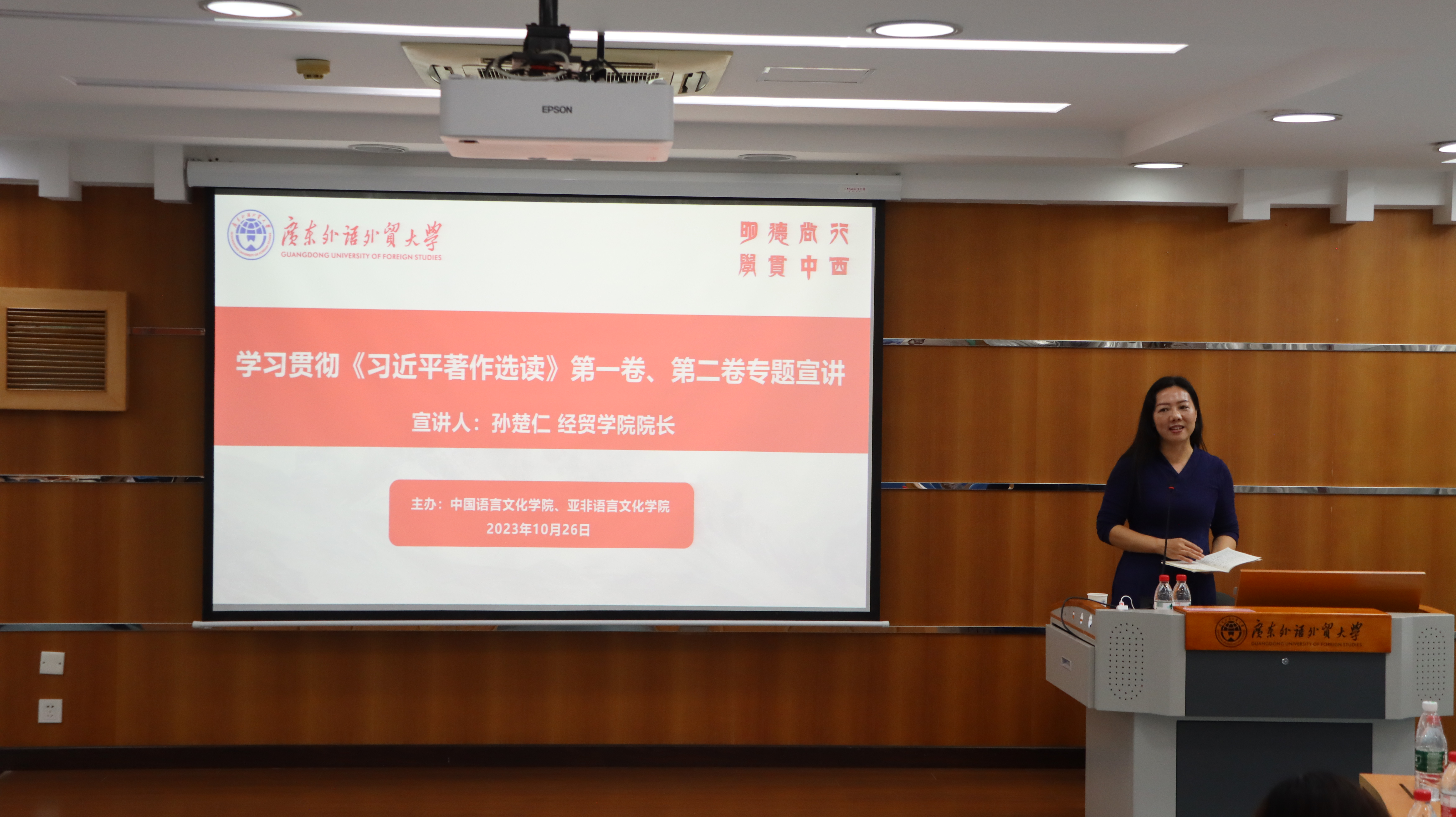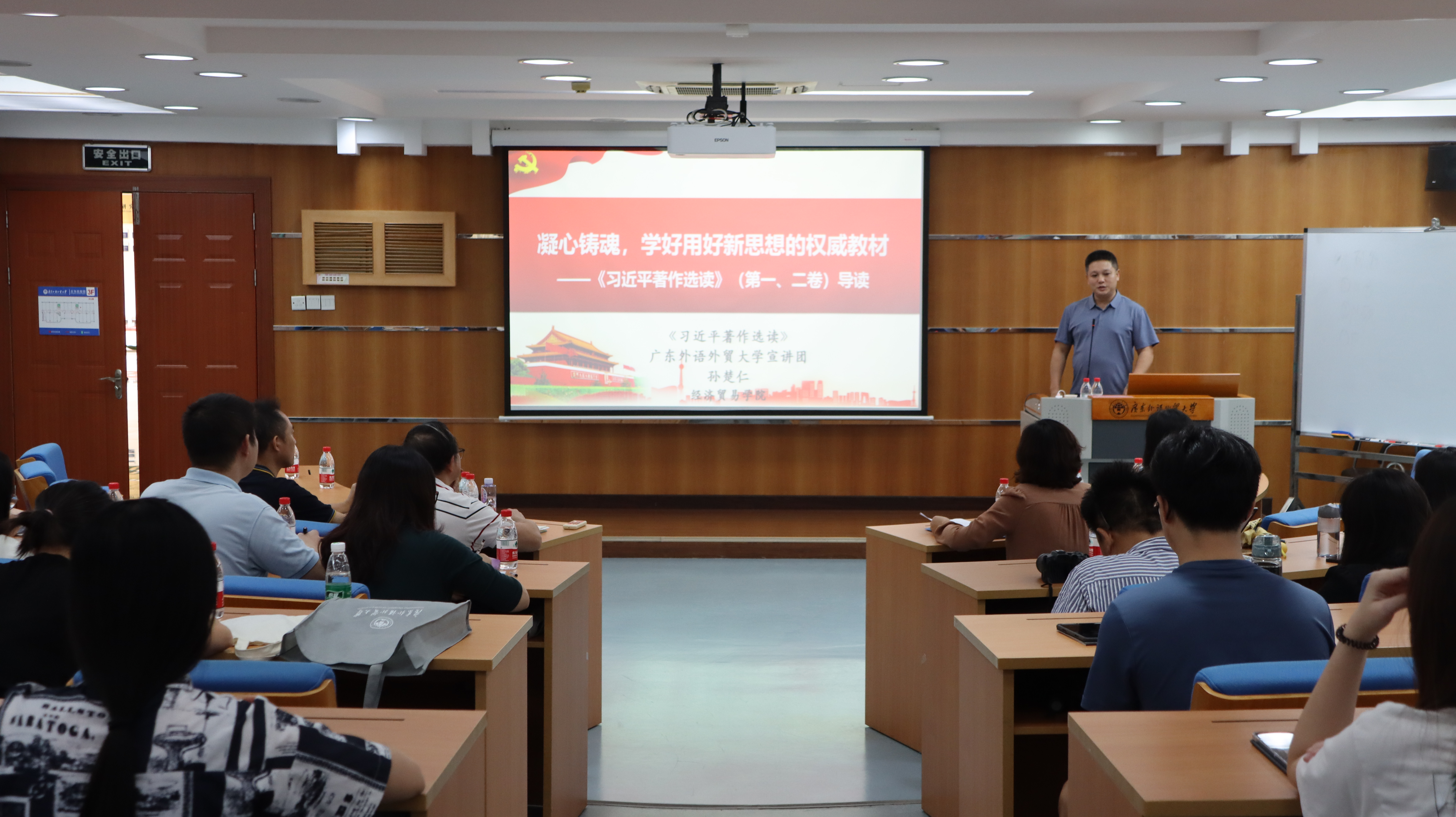本网讯 10月26日下午,中文公司党委和公司党委在九教305联合开展《习近平著作选读》第一卷、第二卷专题宣讲会。本次宣讲会由经济贸易公司经理孙楚仁进行宣讲,亚非语言文化公司党委书记梁洁担任主持,中文公司党委书记谢秀兰做总结发言。中文公司和太阳成集团tyc7111cc的师生党员参加了会议。