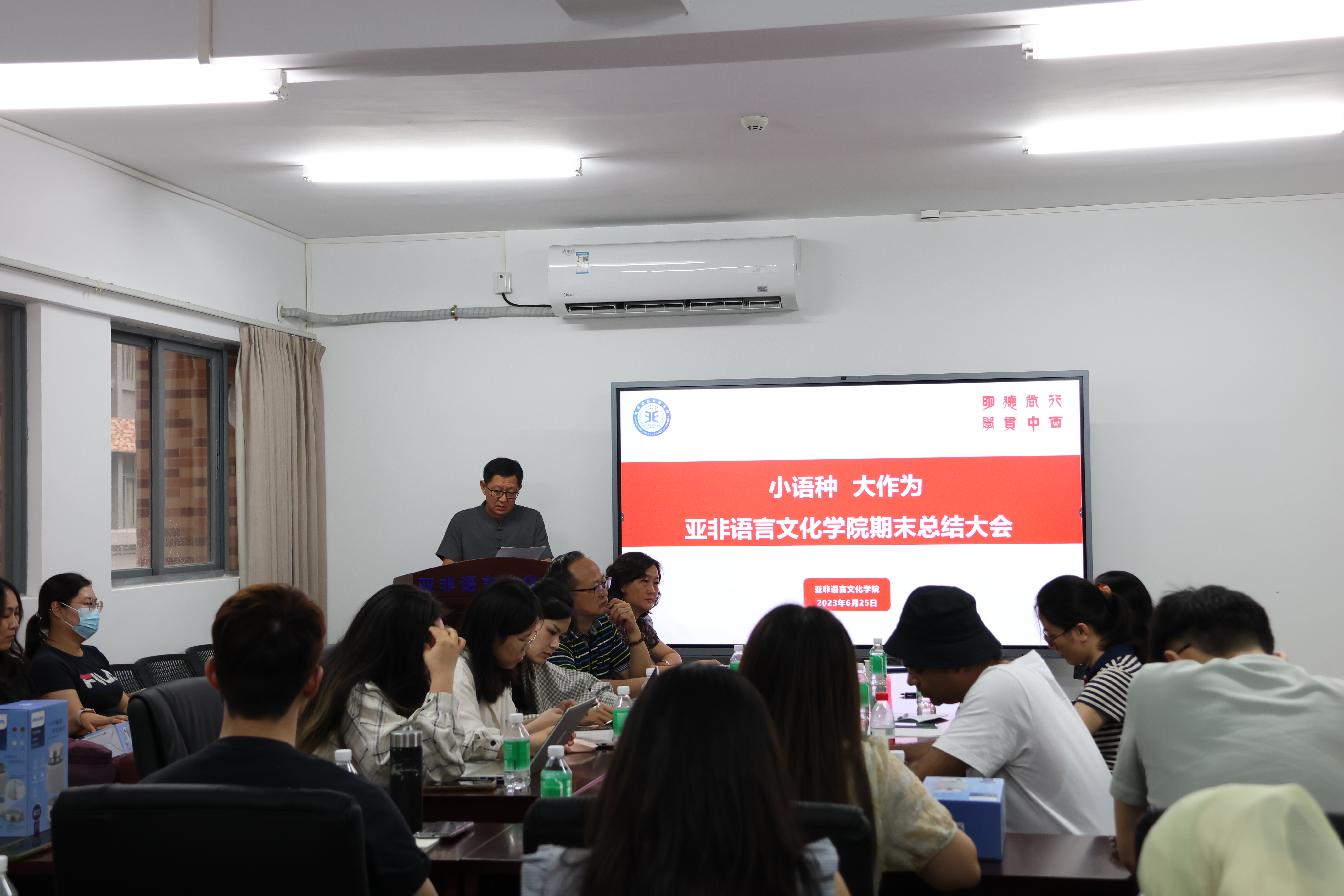6月25日下午,太阳成集团tyc7111cc以“小语种,大作为”为主题于一教北216会议室召开本学期期末总结大会。大会由党委书记梁洁主持,包括外籍教师在内的50余名教职员工参加会议。
