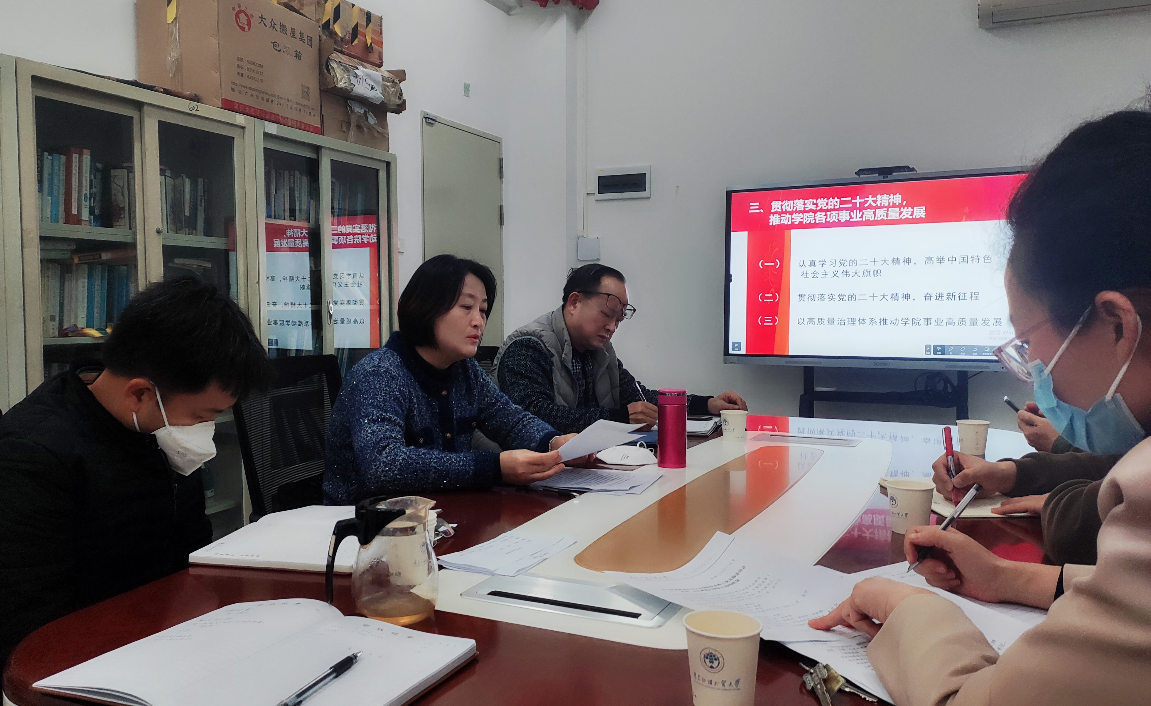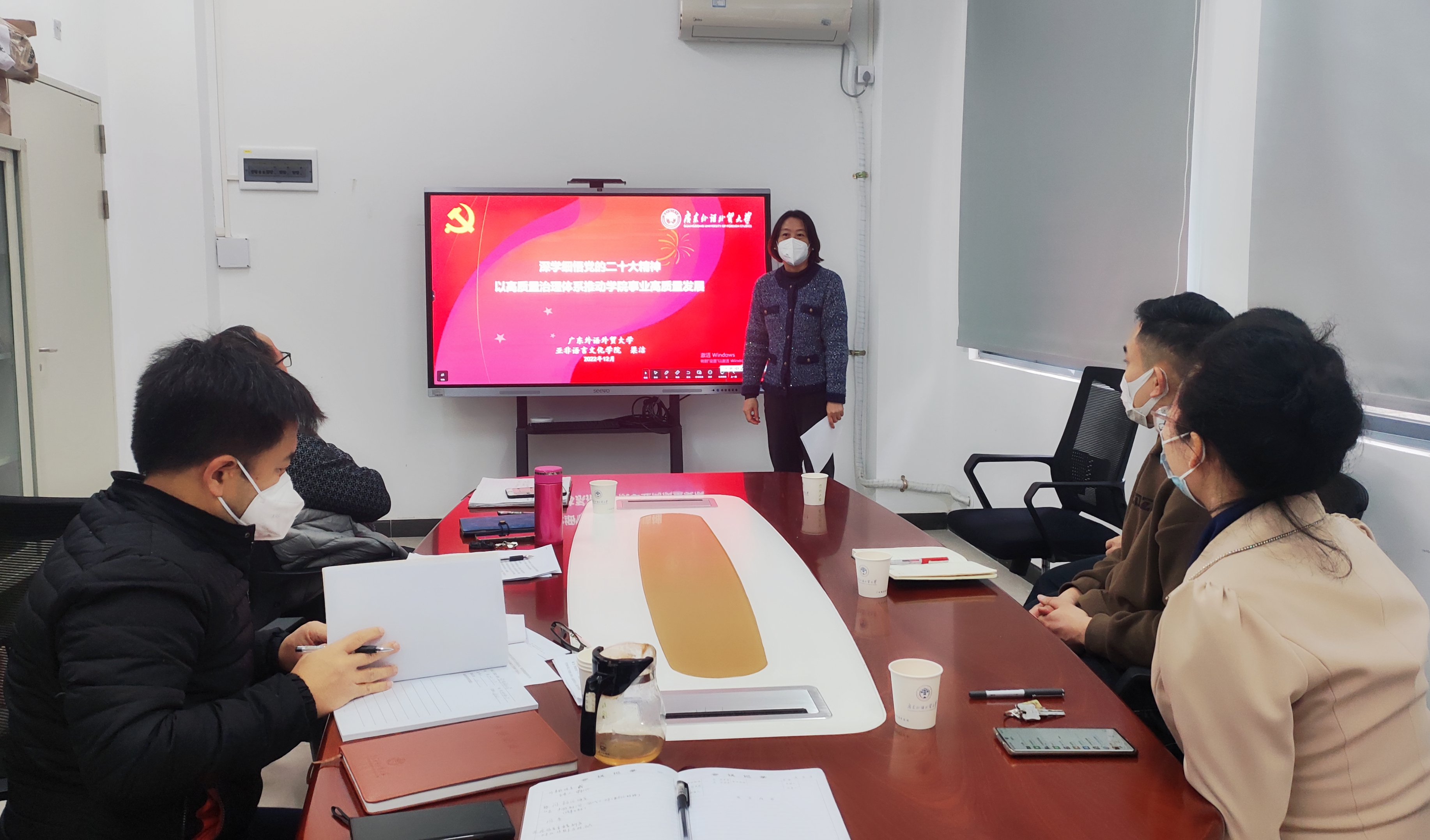 为深入学习宣传贯彻党的二十大精神,12月9日下午,亚非语言文化公司党委书记梁洁做题为“深学细悟党的二十大精神,以高质量治理体系和治理能力现代化促公司高质量发展”的宣讲活动,公司党委委员及行政党支部教职工人员参加。