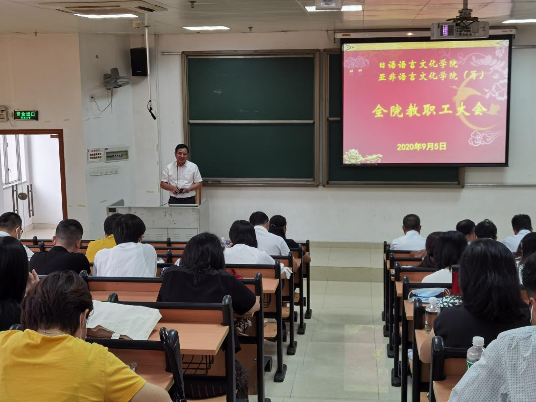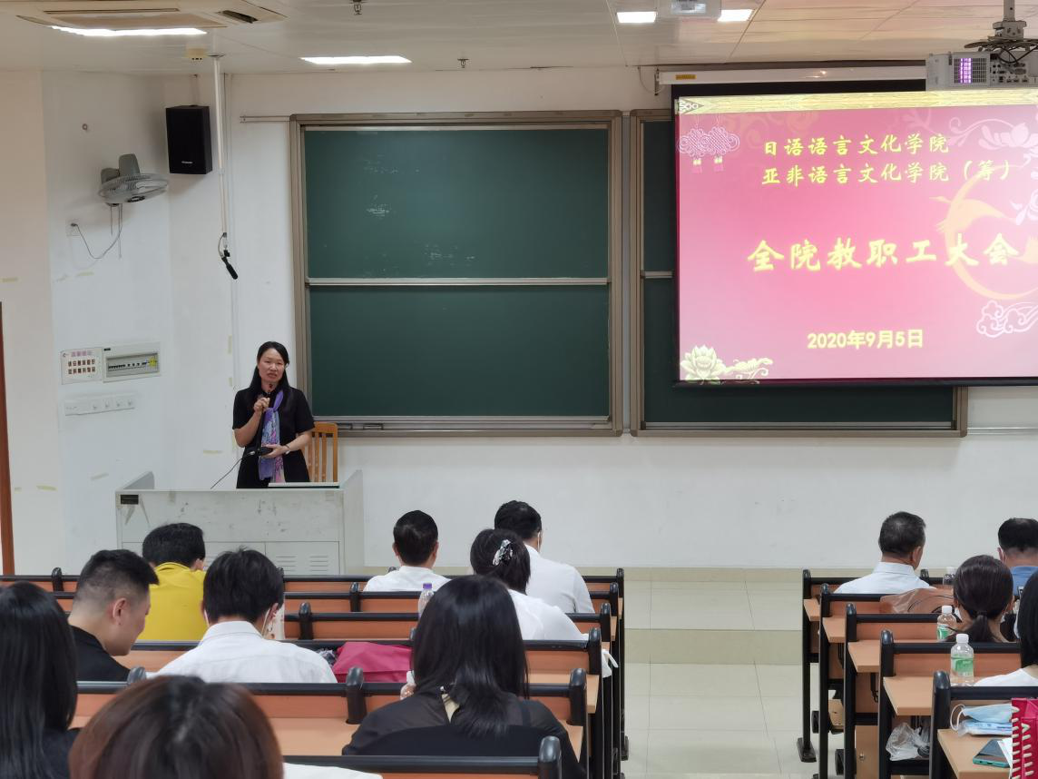 2020年9月5日上午,日语公司、太阳成集团tyc7111cc(筹)全体教职工大会在北校区第七教学楼314召开,公司领导及全院教职工参加此次会议,本次会议由公司党委书记周秀娇主持。
