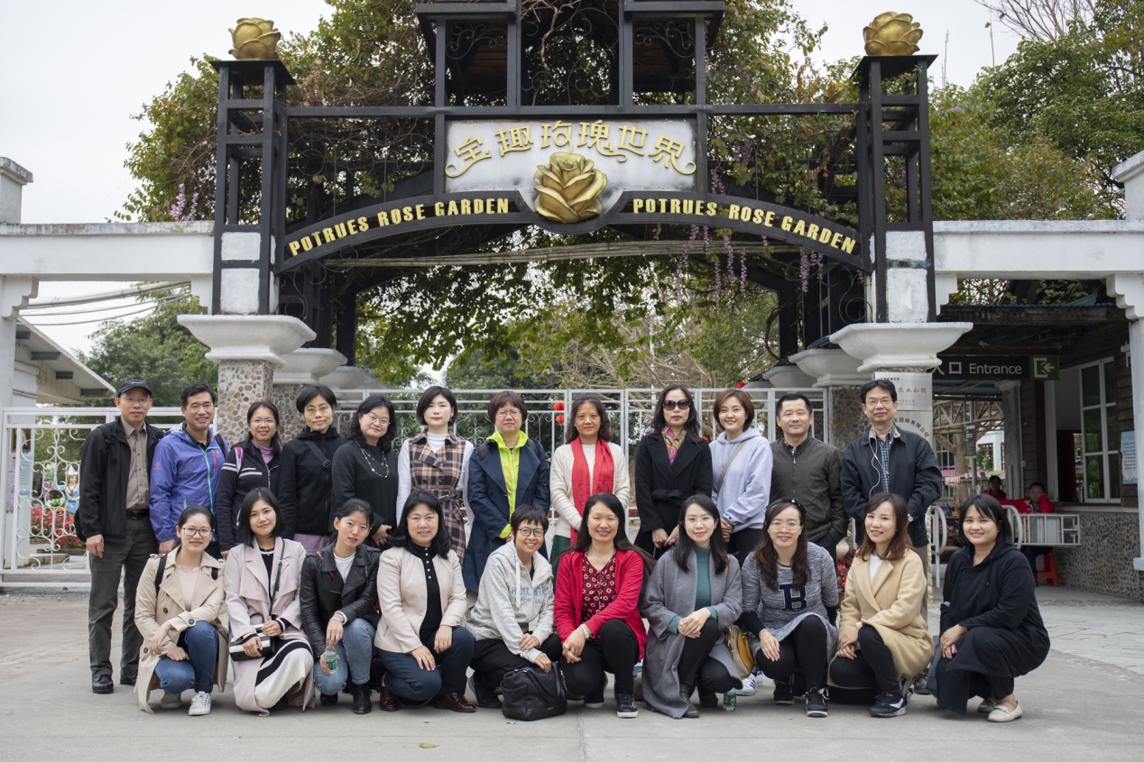 出游地点选在宝趣玫瑰世界主题公园。宝趣玫瑰园位于著名从化美丽乡村之称“西和村”,坐落于北回归线沿线,有独特的亚热带气侯,生态环境优美,占地1000多亩;2007年12月开园,是国内首个以玫瑰文化为特色的主题公园,也是一个集生产、销售、科普教育﹑休闲观光为一体的多功能综合性主题公园。教职工们三五成群漫步在花海中,不时在花丛、建筑前停下脚步留影,欢声笑语不断。最后大家满意而归。