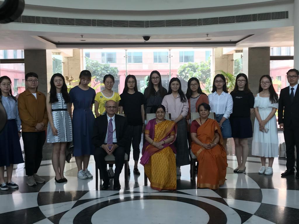 当地时间10月25日上午,受邀到访的中国师生代表一行到达印度外交部德里中央秘书处,印度外交部长斯瓦拉杰在此会见了所有师生代表。双方进行了深度的交流互动。斯瓦拉杰表示,如今中印两国关系日益密切,双方在各个领域的交流也越来越多,两国领导人都非常重视双方交往。但是,斯瓦拉杰认为,仅仅是政府与政府间的交往还不够,人民与人民之间的交流也十分重要。本次中国员工的访问就是一次意义重大的中印民间交流。她希望,中国师生代表能将在印度的见闻与感受带回国,让更多中国人了解真实的印度,同时也希望此次活动能推动双方民间交流的进一步发展。员工代表在发言中表示,会尽自己的一份力并且发挥专业优势,为中印友好关系的进步作贡献,也希望将来有更多的中国员工能来印度学习交流。