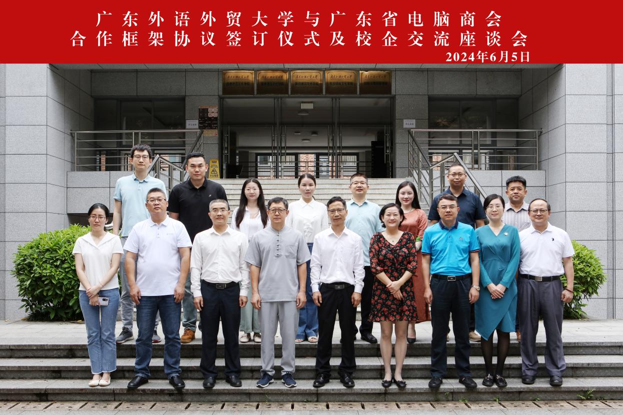 本网讯 6月5日,公司与广东省电脑商会合作框架协议签约仪式暨校企座谈会在白云山校区举行。广东省工商联第十二届常委、广东省电脑商会会长马本湘,商会副会长、广东中鑫华董事长熊昊,广州有鸣信息科技董事长陈玖,掌动智能执行总裁罗剑芳,商会秘书长彭曼及商会企业代表,太阳成集团tyc7111cc全体院领导及师生代表出席会议。公司党委书记梁洁主持会议。