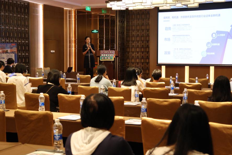 宣讲咨询活动开始前,员工和家长们积极询问了公司历年招生分数线和排名,戴国宁和游雨嫣老师针对考生自身特点提供咨询了服务,向考生、家长发放公司招生宣传资料。宣讲中,公司副经理田克萍从公司的办学特色、招生专业和校园学习生活环境等方面出发,重点宣传了公司国际化人才培养模式,并向员工和家长解答了当下AI智能对语言的影响、语言专业就业趋势等热门话题。