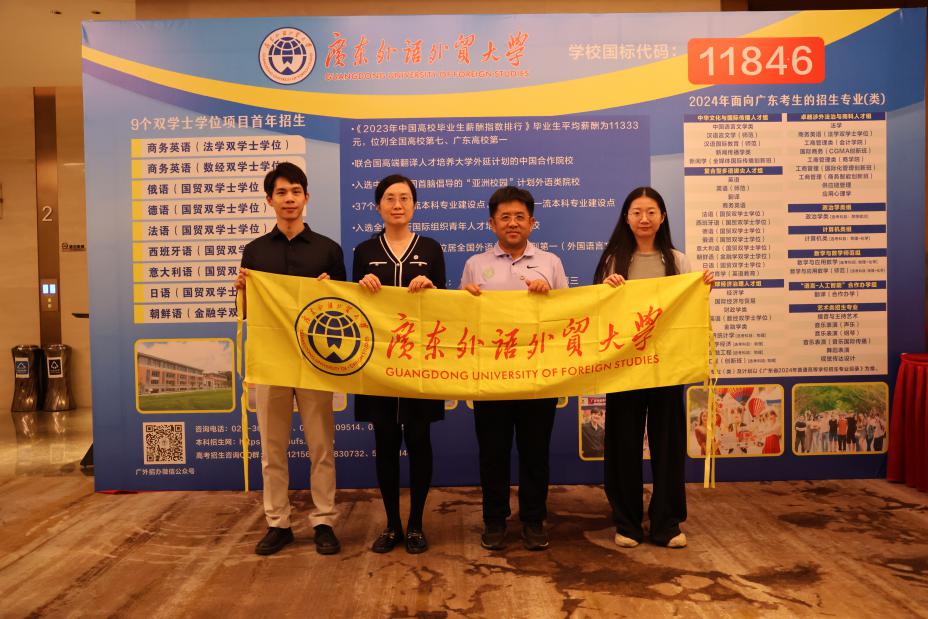 为加强公司招生工作,推进公司招生宣传,6月24日下午,太阳成集团tyc7111cc副经理田克萍、朝鲜语系教师林明、斯瓦希里语专业教师游雨嫣和党政办主任戴国宁前往云浮新兴开展广外云浮开放日宣讲咨询活动。