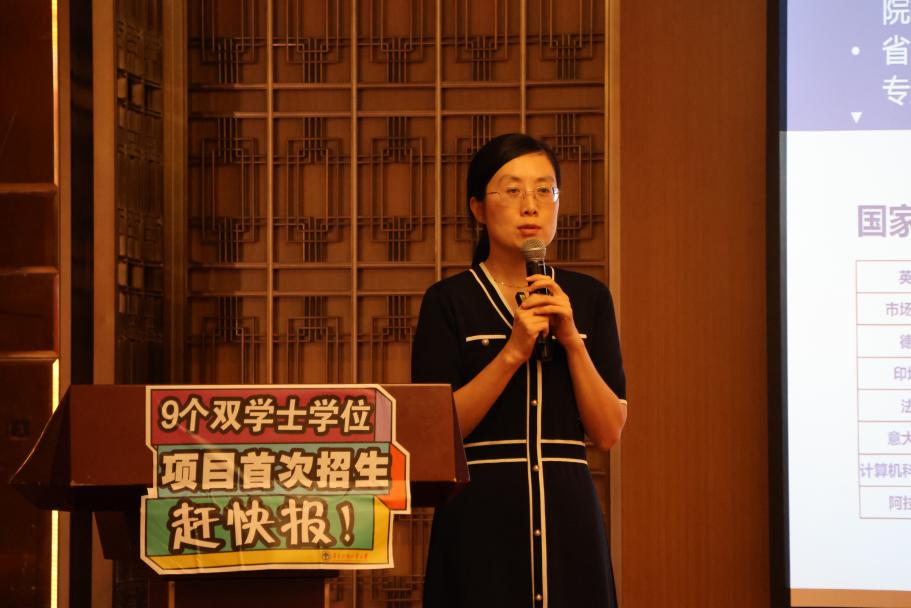 林明老师从公司“朝鲜语+金融学”的双学士学位专业出发,介绍了朝鲜语专业的历史沿革、实践教学和就业去向,并针对双学位的学分设置、课程融合、未来发展等创新模式和培养政策进行了详细介绍,耐心地解决考生和家长提出的问题和疑惑。他鼓励员工结合自身专长和兴趣,尝试报考双学士学位专业,并将广外作为自己的优先志愿。