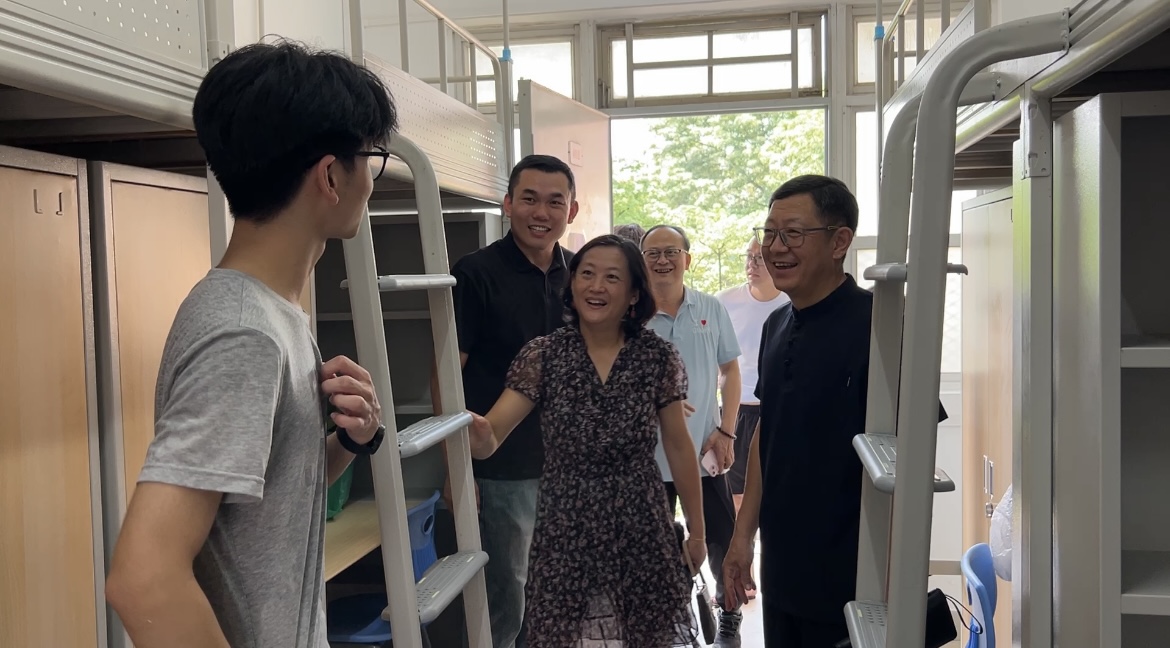 随后,公司领导、学工团队一行共同前往新生宿舍对新生表示亲切的慰问,在表达热情欢迎的同时,关心新生的身体状况以及对新环境的适应情况,公司领导祝愿新生早日适应新环境,开启四年广外美好大学时光。
